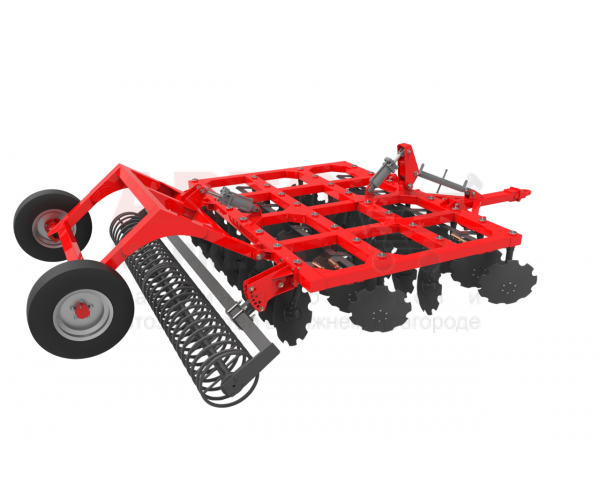 Простая и надежная система регулировки положения высоты прикатывающего катка позволяет быстро настроить заглубление дисковой бороны. Также предусмотрена возможность быстрого и простого отсоединения прикатывающего катка с дисковой бороны. Также имеется возможность комплектовать дисковые бороны со спиралевидным (для чернозема) или планчатым катком (для суглинистой и каменистой почвы)