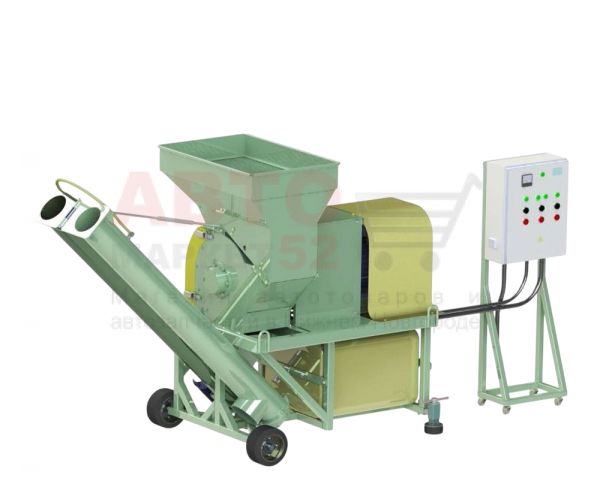 Измельчитель влажного зерна предназначен для измельчения зерновых культур для последующего производства кормов животноводческого назначения. Позволяет измельчать различные типы зерновых (пшеница, кукуруза, ячмень, овес и др.) влажностью до 40% и подавать в транспортное средство или к смесителям (если это необходимо), либо непосредственно в места для хранения (консервирование), а так же упаковывать в полиэтиленовый герметичный рукав. Средний размер частиц при измельчении зерновой смеси – 1,8 мм. В межсезонье измельчители могут использоваться для измельчения фуражного зерна с целью текущего использования.