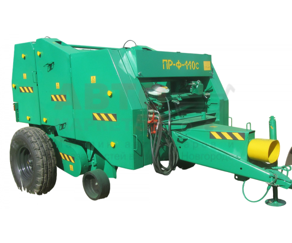 Пресс-подборщик ПР-Ф-110С имеет постоянную камеру прессования, оснащенную цепочно-планчатым конвейером и представляет собой модифицированную конструкцию серийного пресс-подборщика ПР-Ф-110 с целью повышения производительности работы за счет сокращения время обмотки рулонов сеткой и улучшения качества их хранения, благодаря формированию цилиндрической и хорошо обтекаемой формы упаковки.