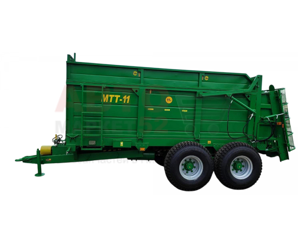 Машина МТТ-11 оснащена подвижным задним бортом, подъем и опускание которого осуществляется гидравлическим приводом с кабины трактора.