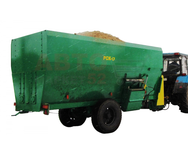 Раздатчик-смеситель кормов РСК-17 предназначен для загрузки, доизмельчения, смешивания и раздачи смесей стебельчатых и концентрированных кормов с индикацией их массы. Использование кормораздатчика позволяет достигнуть однородности многокомпонентного корма более 85 %, и снизить неравномерность раздачи корма по длине кормового прохода до 5-10 %.